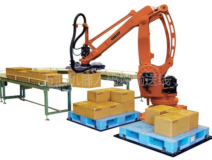 機器人碼垛系統是一種智能高效的碼垛機。隨著工業芯片技術上的發展及AI技術的進步,機器人的智能性已經代替人類的初步勞動,機器人碼垛機構靈活輕便,是工廠的明智選擇